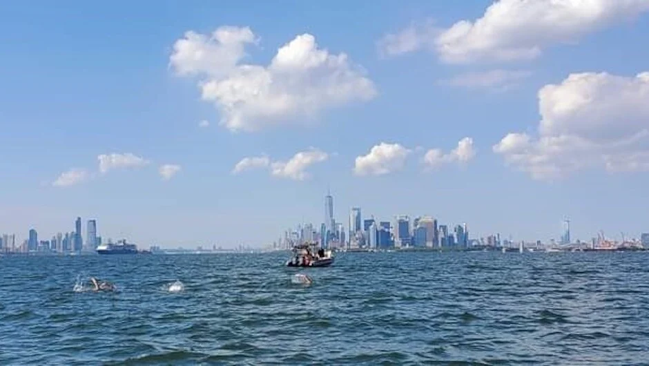 At Gravesend Bay, we fought the currents until the tides shifted, then we headed up the river with the Manhattan skyline as our visual guide. There were four of us on the swim and the rules stipulate that we cannot be aided in any way (no touching the boat, no wetsuits, and just one swim cap).