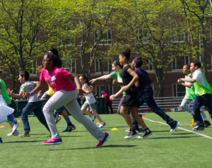 Every school year, Asphalt Green hosts Recess Enhancement Program (REP) Field Day to celebrate and thank all the kids who participated in REP, our active and exercise-based recess program. On May 16, more than 200 kids from three schools in Harlem and one school in Queens came to our Upper East Side campus for a day of fun and games.