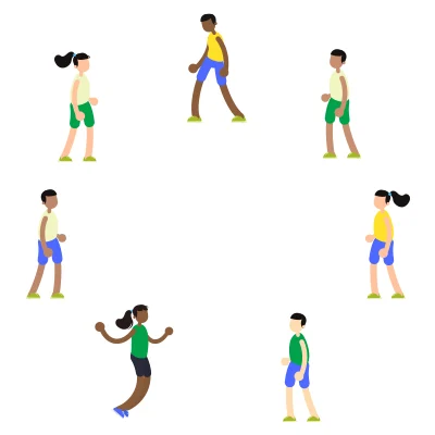 - Players form a circle, standing 6 feet apart from one another.