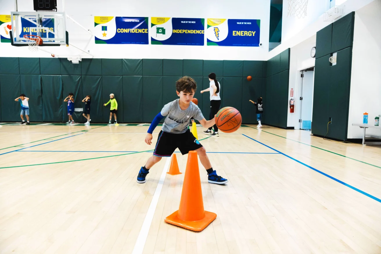 Asphalt Green’s youth basketball program teaches the fundamentals of the game while helping players build confidence, coordination, and teamwork. Whether your child is picking up a basketball for the first time or preparing for league play, we offer classes and leagues for every skill level developed by the award-winning coaches of Asphalt Green Basketball